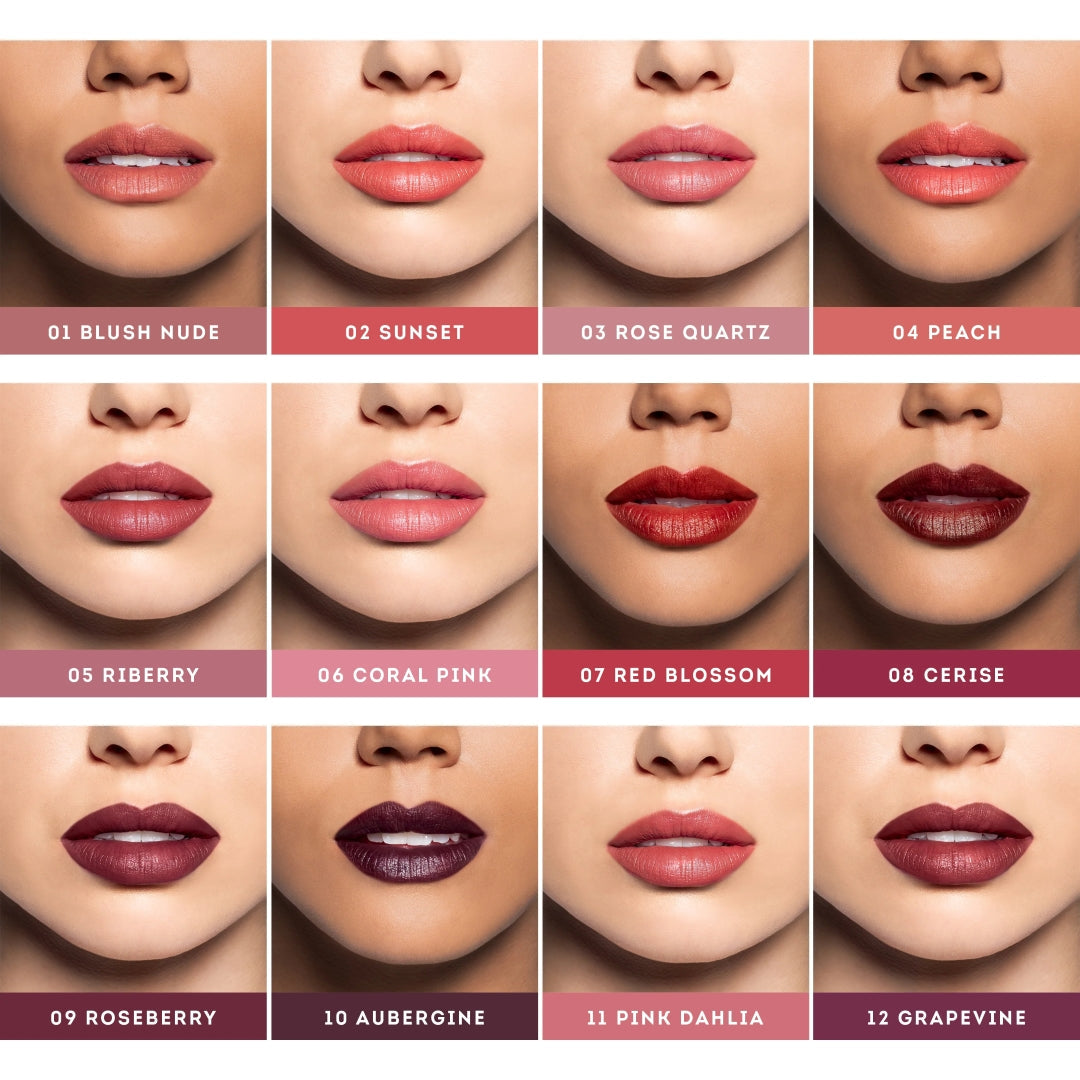 A creamy matte lipstick with full colour coverage and smooth comfortable wear.