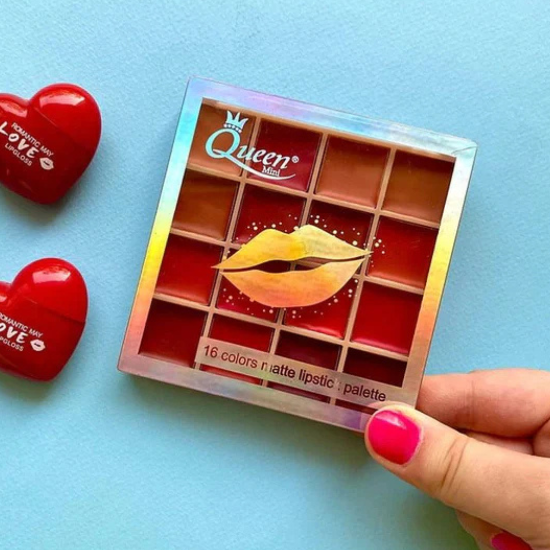 Queen Mini | 16 Colors Matte Lipstick Palette Highly Pigmented for Makeup